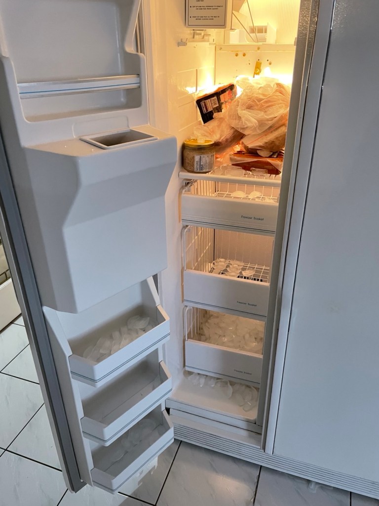 냉장보관 해야하는 것 들을 넣어 두려고 냉장고를 열었는데 얼음이 후두두두둑…